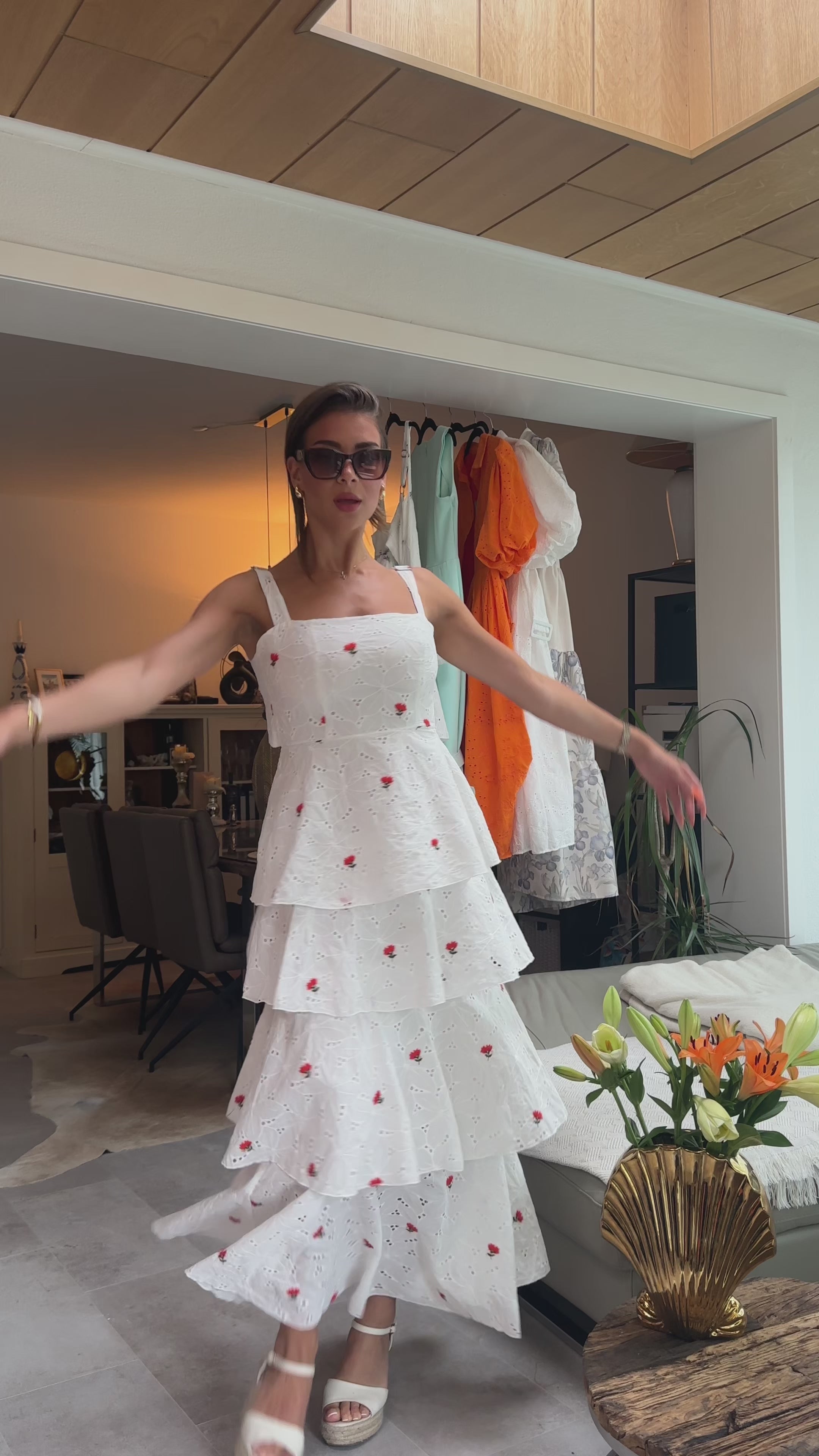Verstellbare Träger sorgen für perfekten Sitz, und der figurbetonte Oberkörper geht elegant in einen weit schwingenden Rock über – ideal für Sommerfeste, romantische Dinner oder mediterrane Spaziergänge bei Sonnenuntergang.