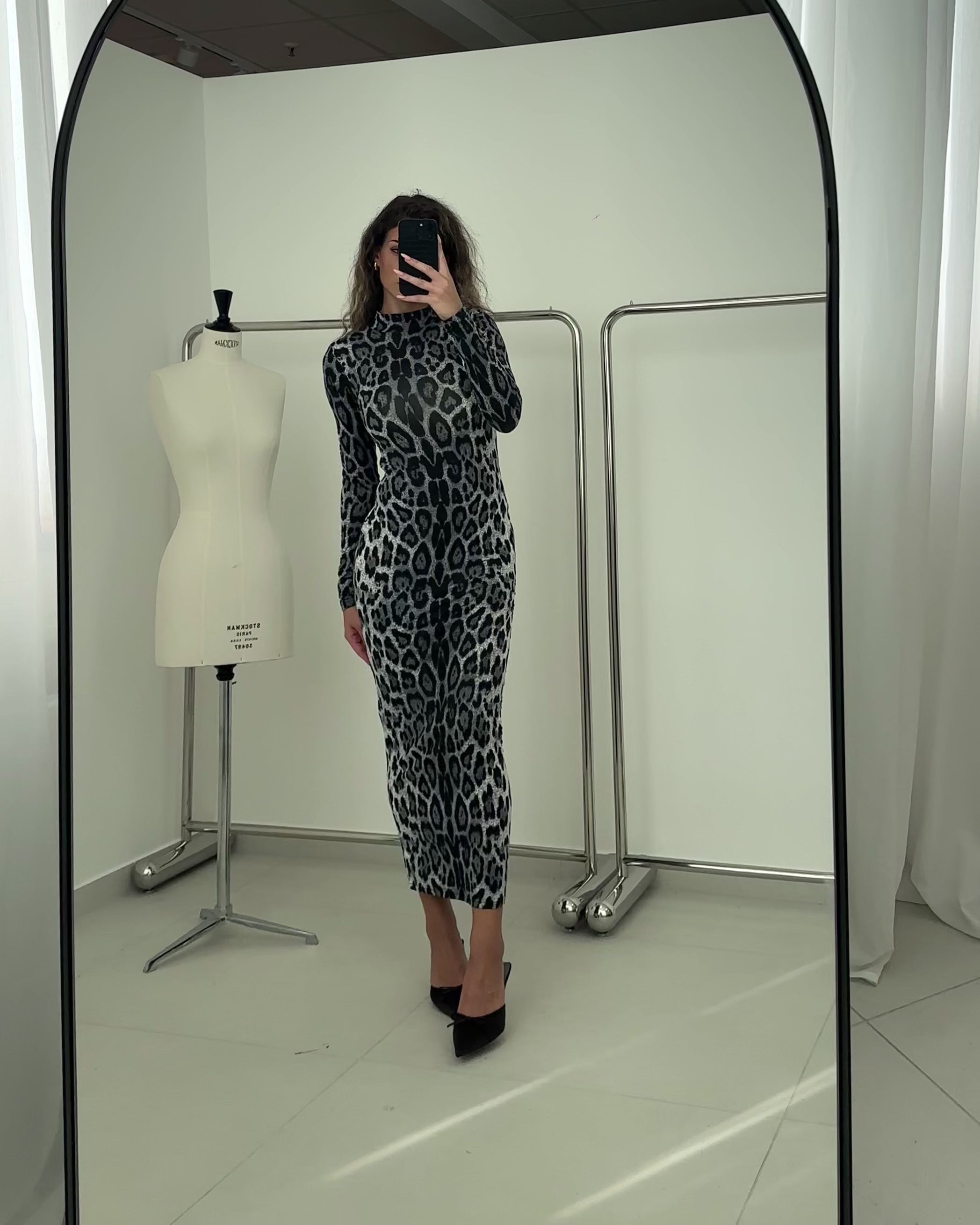Das Silhouette Leopard Dress: Ein langes Kleid mit elegantem Leopardenmuster, das perfekt sitzt und eine atemberaubende Silhouette kreiert. Dieses Kleid kombiniert Wildheit mit Stil und ist ideal für unvergessliche Auftritte, bei denen du alle Blicke auf dich ziehst.